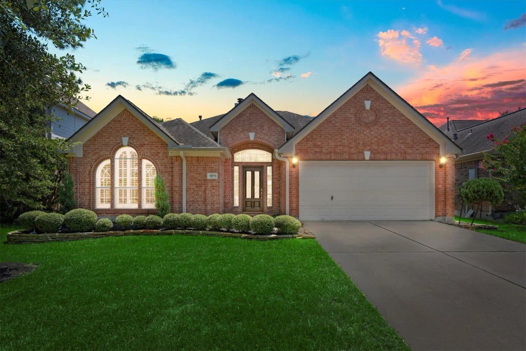 Charming and updated one-story brick home in the guard-gated community of Canyon Gate at Northpointe! Welcoming covered front porch with decorative glass door. Inside, enjoy wood-look tile flooring in the main living areas and primary suite, new carpet in secondary bedrooms, updated lighting, ceiling fans, recessed lighting, crown molding, and plantation shutters. The remodeled kitchen features granite countertops and backsplash, stainless-steel appliances (refrigerator included), undermount sink, and walk-in pantry. Living room offers a cozy fireplace with ceramic gas logs, and both bathrooms are tastefully updated. Fresh professional paint and updated hardware throughout. Step outside to an oversized covered patio with ceiling fans, perfect for entertaining or relaxing. A/C system recently updated, full sprinkler system, and leaf guard gutters. Community amenities include clubhouse, pool, tennis, fitness center, volleyball court, and walking paths. Move-in ready and waiting for you!