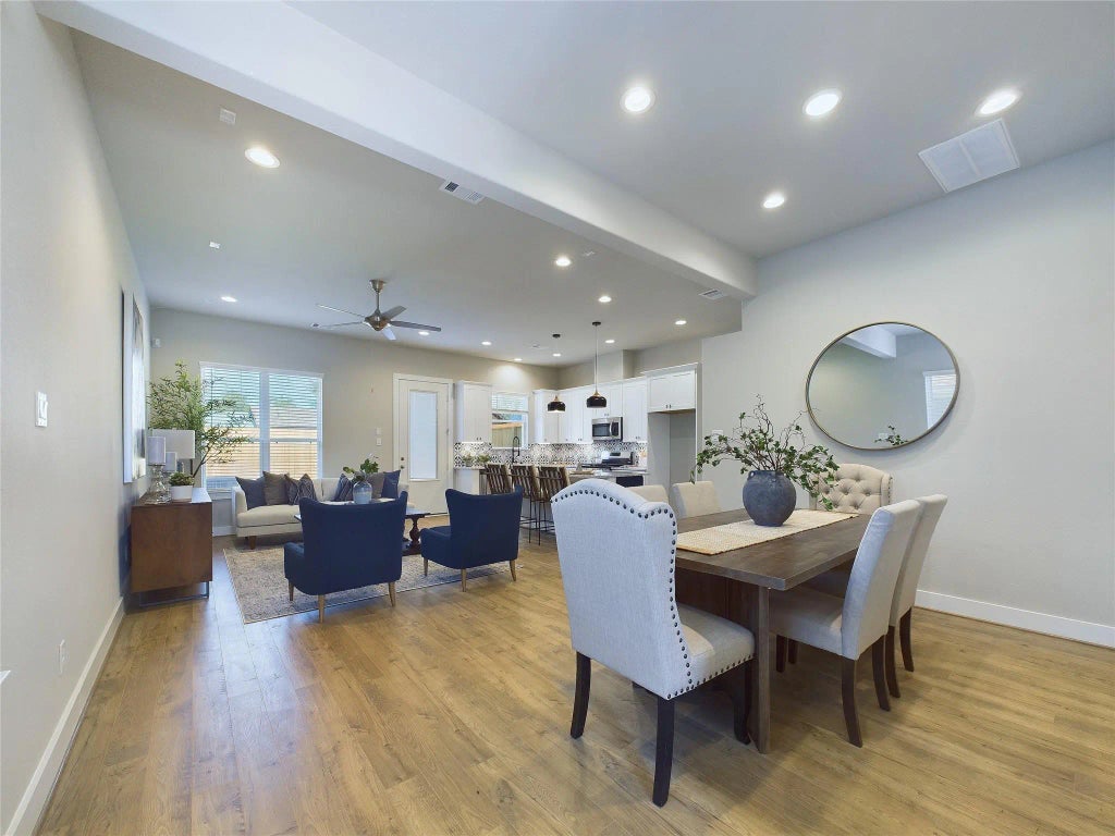 MOVE IN READY-Introducing Rosslyn Heights! A gorgeous new construction development by Cyrene Homes. Move-in ready! Private Driveways! 3 bedroom 2.5 bath.Close to the Oak Forest area with convenient access to shops, restaurants, and parks, this home provides a practical blend of comfort and convenience. Beautiful wood flooring throughout the living and primary bedroom spaces. Open-concept living area on the first floor with high end finishes throughout with recessed lighting. The kitchen has a large island and stainless steel appliances undermount lighting and soft close drawers. The primary bedroom has a vaulted ceiling with a large primary bath that contains a soaking tub with a separate walk-in shower with frameless glass. There is a bonus living space on the second floor! Fenced-in backyard for outdoor entertainment. Ceiling fans, blinds and a sprinkler system included!