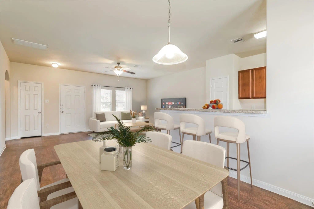 The recently renovated, Crystal floorplan is a spacious and elegant two-story townhome offering 1,717 square feet of living space with 3 bedrooms and 2.5 baths. The master bedroom is conveniently located on the first floor and features a large walk-in closet for added convenience. Upstairs, you'll find two additional bedrooms, perfect for family, guests, or a home office. Additional features include a fully fenced backyard for privacy, a two-car garage for parking and storage, and a sprinkler system to maintain a lush, green lawn with ease. All homes are SimplyMaintained for a $100 monthly fee that includes front and back yard lawn care and exterior pest control