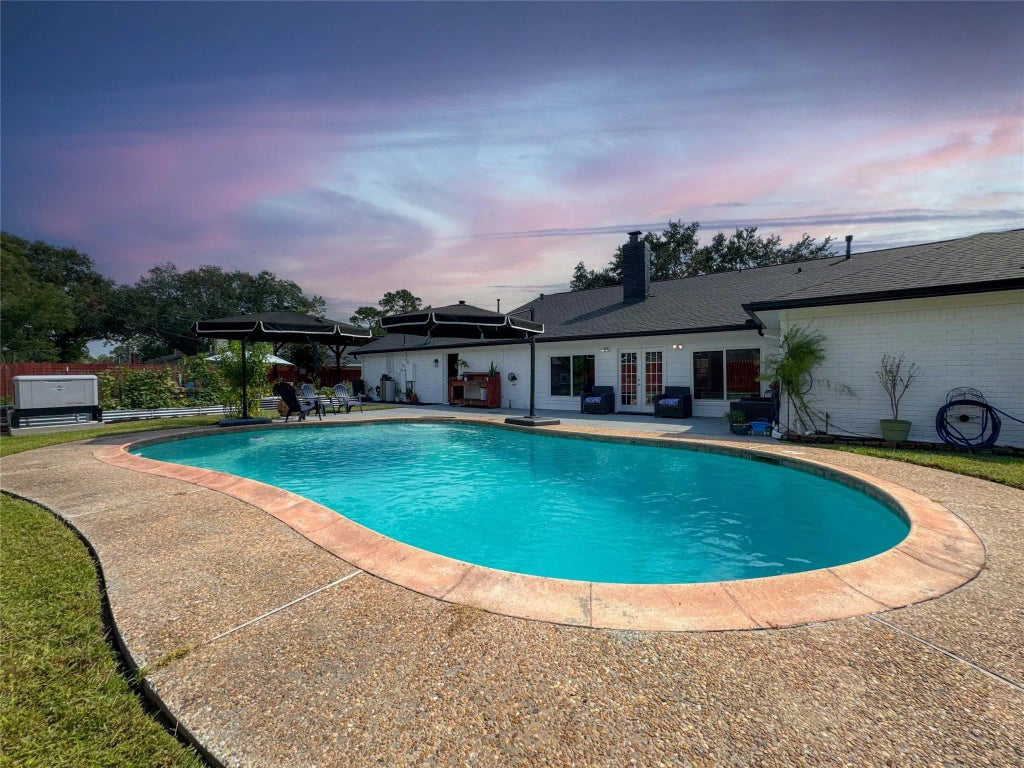 Welcome to 2610 Adams St in Alvin, TX — a beautifully updated 4-bedroom, 2-bath home thoughtfully designed for comfort, function, and entertaining. This home sits on a spacious lot in a quiet, established neighborhood and did not flood during Harvey. Inside, you'll find an inviting open layout with a galley chef’s kitchen, energy-efficient windows, and a sunroom perfect for pool guests. The private primary suite features dual master baths, including a walk-in shower and garden tub, while every bedroom offers double closets. Outdoor living shines with a sparkling pool, covered patio, and a large carport with space for a boat, RV, or up to six vehicles. The property also boasts a stamped-concrete front porch, an urban homestead with an organic garden and aviary, and recent updates including a new roof, paint, and flooring (2025). Conveniently located within walking distance to schools and wired for AT&T Fiber and DirecTV, this home truly has it all!