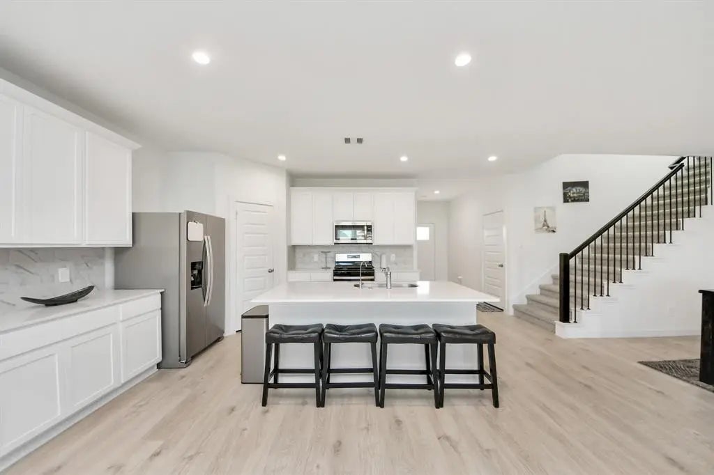 Welcome home to this 2024-built residence, fully furnished and offering 4 bedrooms and 3 bathrooms. From the moment you step inside, you’ll notice the sleek flooring throughout and the open-concept layout that creates a bright, inviting atmosphere. The kitchen features light-colored cabinets and countertops, a spacious island that doubles as a breakfast bar, and plenty of room for cooking and entertaining. The primary bedroom is conveniently located on the first floor, providing added privacy from the other bedrooms. Upstairs, you’ll find a versatile game room perfect for family nights or a cozy lounge area. Step outside to enjoy the backyard, ideal for summer evenings and outdoor gatherings. This home also comes equipped with an Aquasure whole-home water filtration system, ensuring clean, filtered water throughout the entire property. With optional tasteful furnishings already in place, this home is move-in ready. Don’t miss your chance to see it schedule your tour today!