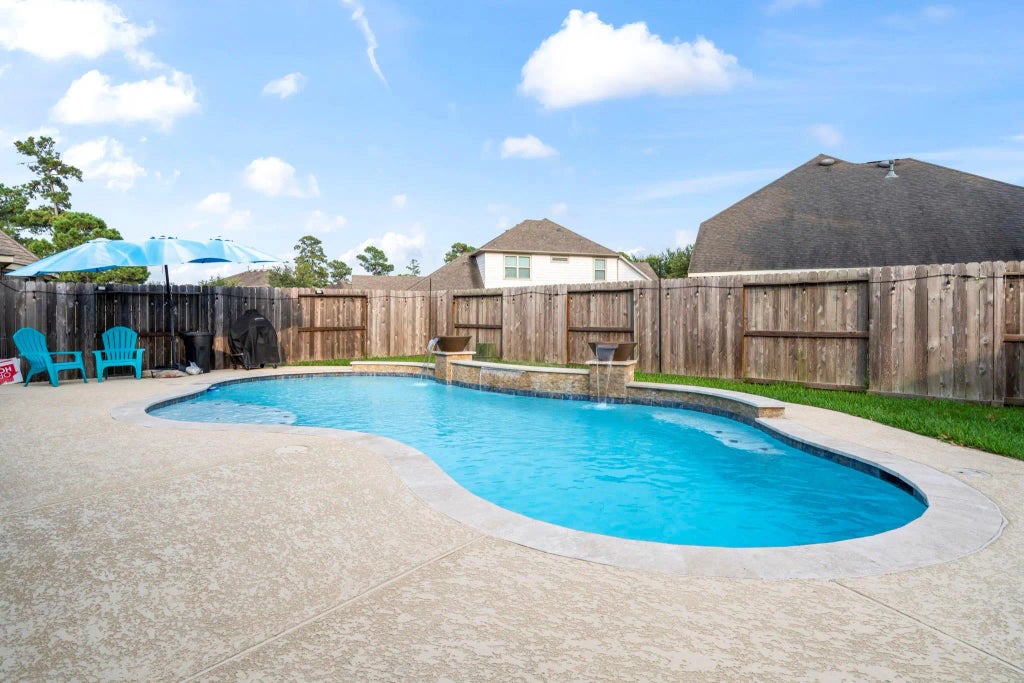 Rare opportunity in Waters Edge! Featuring a private pool, energy-saving solar panels, and resort-style community amenities, this 4-bed, 2.5-bath home offers exceptional value compared to nearby sales. The property blends comfort with efficiency. The open-concept kitchen provides abundant storage and counter space, flowing into the dining area and family room with a cozy gas fireplace. The first-floor primary suite is a retreat with dual vanities, soaking tub, separate shower, and walk-in closet. Upstairs, you’ll find three additional bedrooms, a full bath, and a versatile game room perfect for family fun or movie nights. Step outside to your backyard oasis with a sparkling pool, ideal for relaxing or entertaining. Energy-conscious buyers will appreciate the solar panels, offering sustainability and long-term savings. Waters Edge residents enjoy a recreation and fitness center, resort-style pool, splash pad, playgrounds, fishing pier, and kayak launch.