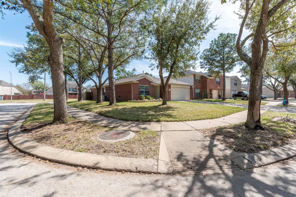 A must see beautiful one-story Pulte home on a corner lot in the desirable subdivision of Canyon Lakes Village, Section 1, which is part of the lovely Stone Gate subdivision, home of the Houston National Golf Course (Public), Sterling Country Club (Private), Splash pad, tennis/pickleball courts, and sidewalks. This 3-bedroom, 2 bath one story home includes a beautiful flex room for a 4th bedroom, study, media, library, game room, or art room. It is a very spacious floor plan. Additionally, it has a newly updated kitchen, covered patio (20 ft x 12 ft), new carpet in bedroom 2 and 3, and new wood-look tile in rest of house. Nicely shaded corner lot adds privacy and serenity. Perfect location for quick in and out of subdivision and close to the Towne Lake Center with upscale dining, shopping and entertainment. The home is vacant, so ease of showing. ****OPEN HOUSE, Sunday, March 16, 2025, 1-4 PM****
