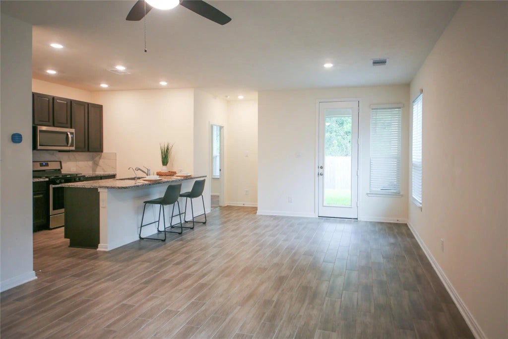 This upgraded 2022 one-story home provides privacy with no back neighbors and greenbelt view. Featuring 3 bedrooms, 2 full bathrooms, and a 4th room perfect for a home office, playroom Upgraded wood-tile flooring throughout living areas and carpet in the bedrooms, a stone and brick exterior, and energy-efficient windows. The open-concept layout includes a kitchen with granite countertops and stainless appliances—refrigerator, washer, and dryer already in place. The primary bathroom has an extended walk-in shower, and ceiling fans are in several rooms. Step outside to a fenced backyard with a covered patio and no back neighbors. Can be lease for 6 months for $2150.00 monthly Easy access to FM 2978, Grand Parkway (99), and The Woodlands. Additional features: 2-car attached garage Pet-friendly (case-by-case basis) Rental Requirements: 650+ credit score No evictions or bankruptcies Income at least 3x the monthly rent
