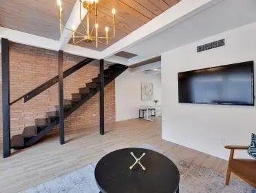 Welcome to this stylish and well-maintained condo nestled in a quiet, gated community just minutes from the Texas Medical Center, shopping, dining and hike-and-bike trails. This two-story home features eye-catching floating stairs, a beautiful exposed brick accent wall, and updated flooring and light fixtures. The modern kitchen is equipped with a stainless steel sink and refrigerator, while the bathrooms feature elegant vanities, updated sinks, and a relaxing tub. Enjoy your own private patio and the convenience of an exterior storage room located next to your assigned covered parking space. Located directly across from the community pool this unit offers comfort and convenience in a vibrant location. Cable and internet Provided. Fully furnished and remodeled and ready for immediate occupancy.