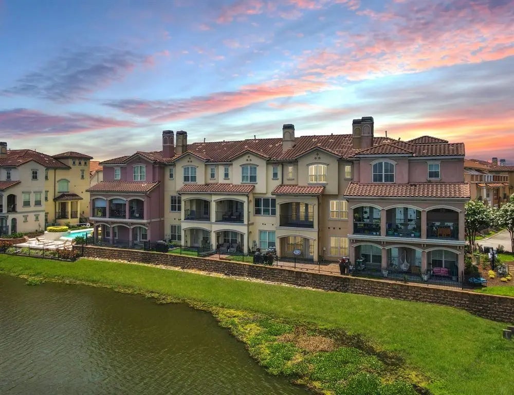 Waterfront in gated ArmandWilde Townhomes, this Mediterranean-style 3-story residence blends luxury, water views, and entertainer’s flair. With 3/4 bedrooms, 2.5 baths, and approx 2,730 sq ft, every level impresses. Stucco exterior with tile roof, balconies overlooking the water, and an interior elevator serving all floors offer easy vertical living for young & old. The first level includes two bedrooms, one with built-ins and a Murphy bed, sharing a full bath. Glass doors lead to an enclosed waterfront patio — perfect for indoor/outdoor living. The second floor is designed for entertaining: a gourmet kitchen with granite island, Wolfe range, KitchenAid appliances, pot filler, & under/over cabinet lighting opens to the dining and living areas. Upstairs, the primary suite offers lake views, a spa-style bath, and a large closet. A fourth bedroom adds flexibility for guests or office. Upgrades include wood/tile flooring, high ceilings, and built-in storage. Minutes from JSC, I-45 & more!