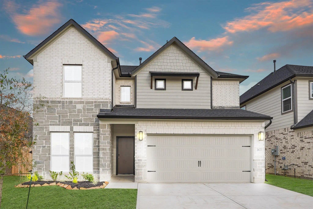 This floor plan showcases 2 bedrooms down, open staircase, and high ceilings. NEW CONSTRUCTION - Long Lake Plan 269, Lake Ridge Series. Versatile 2-story home with 3 bedrooms, 2.5 bathrooms, study or guest suite (4th bedroom) with bath, and 2-car attached garage. Choose from 4 exterior elevations. Ideal layout with flexible living spaces and optional guest accommodations