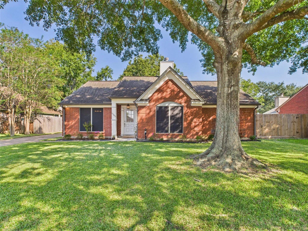 Welcome to this beautifully updated 3-bedroom, 2-bath home in Pearland, zoned to sought-after Pearland ISD! Recent 2025 upgrades include a new HVAC system, fresh paint, updated flooring, and stunning remodels in the primary and guest baths. The red brick, landscaped exterior, mature trees, and solar screens add charm and efficiency, while the detached 2-car garage provides convenience and storage. Inside, you’ll find a versatile formal living room—perfect as an office, playroom, music room, or library—and a formal dining room that can also double as a flex space. The spacious kitchen features granite countertops, abundant counter space, a breakfast bar, and a cozy breakfast nook. Natural light fills the family room, complete with a beautiful brick fireplace, built-in storage, and a wet bar for entertaining. The split floor plan offers a private primary suite with a huge en suite showcasing double sinks, a garden tub, glass shower, and an oversized closet. A move-in-ready Pearland gem!