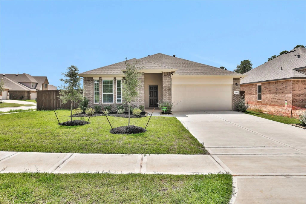 This spacious one-story home features three bedrooms and two bathrooms, perfect for any stage of life. The open kitchen with granite countertops and modern appliances connects to the dining and family rooms, ideal for entertaining. The private master suite includes a bathroom with double vanities, a bathtub and shower, and a large walk-in closet.