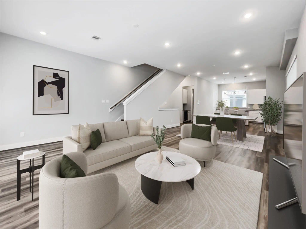 EXCELLENT LOCATION!! Modern urban living in the heart of SPRING BRANCH! This stylish residence offers an open-concept living/dining/kitchen with soaring ceilings, wide-plank flooring, and walls of windows for incredible natural light. The chef’s kitchen features an entertaining island, quartz countertops, stainless appliances, wet bar with beverage fridge, and abundant storage. Relax in the spacious primary suite with a spa-like bath (double vanities, oversized shower, and soaking tub) plus a generous walk-in closet. Secondary bedrooms each enjoy en-suite baths—ideal for guests, roommates, or a home office. Appointed excellent Spring Branch school district and close proximity to superior private schools. Located just minutes to Memorial Park, Uptown/Galleria, CityCentre, and quick access to I-10. Low-maintenance lifestyle with a small front green space in a gated community that includes a dog park and guest parking.