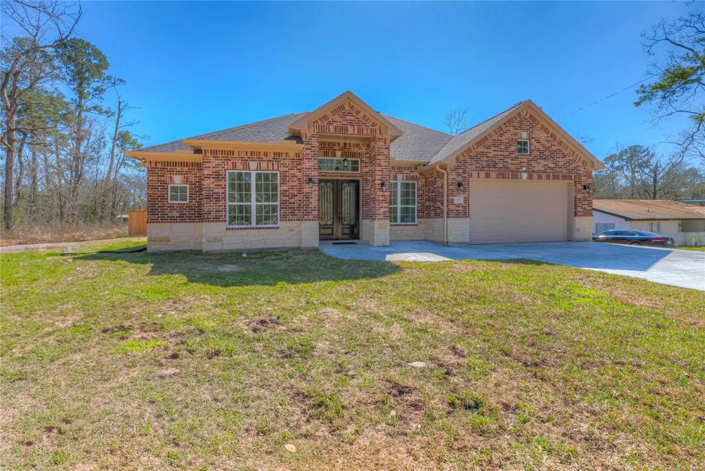 Step into luxury with this beautifully designed new 2950 sq ft home, perfectly situated on over half an acre of land. This custom-built masterpiece features 2 spacious master bedrooms and 2 inviting guest bedrooms,3.5 bathrooms . The heart of the home is the expansive island kitchen, complemented by a formal dining area and a cozy breakfast nook.Quartz counter tops thru out. An office space provides functionality, while the impressive 12 ft ceilings thru out create an open and airy atmosphere throughout.The thoughtful layout includes air returns in the bedrooms and master bathroom for optimal ventilation.Indulge in relaxation with a custom tub, walk-in shower, and generous walk-in closets, along with stylish double sinks.A striking stained wood ceiling, paired with a convenient sink and gas hook-up, adds a unique touch. The fenced backyard offers privacy, while the finished 2-car garage provides plenty of storage.Ideally located near IAH airport, Grand parkway shopping, dining and more