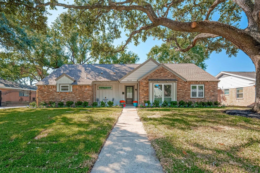 Elegant remodel in sought after Woodside. The entry invites you into a contemporary foyer with a striking black accent wall & half bath. Dining room overlooks the large backyard with a new pergola covered patio, & professionally landscaped. Living room with high ceilings & ample natural light, featuring a sleek electric fireplace, floating shelves, cabinetry for storage. Kitchen w/stainless steel THOR appliances, custom cabinets, quartz counters with waterfall island. French doors open to the office/study. Stylish bar area with a cozy seating nook, a built-in wine refrigerator, floating shelves, and hardwood flooring. Primary bathroom with double vanity, oversized walk-in shower w/frameless glass door, textured wall of tile, & walk-in closet. Large back bedroom features a built-in desk area. New HVAC, electrical, plumbing, windows, driveway, electric gate, & MUCH more room enough for pool. Never flooded per Seller. Minutes to Downtown, Medical Center, Museum district.