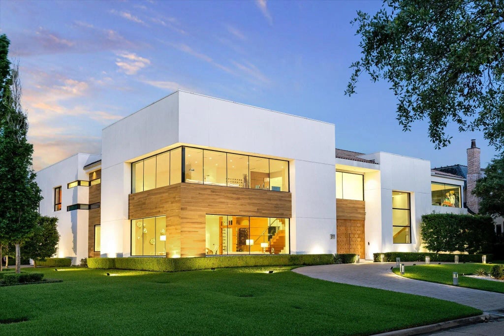 Located in Tanglewood just north of Woodway, this custom contemporary residence is the result of a thoughtful collaboration between owner and architect, Mauricio Vela, and Sims Luxury Builder's. Designed for both grand entertaining and intimate family living, the home seamlessly blends indoor and outdoor spaces. Light-filled interiors, soaring ceilings, and clean architectural lines define the open floorplan. A dramatic entry leads to a sleek wet bar, expansive living and dining areas, and access to the resort-style patio with infinity-edge pool. A glass-enclosed wine room and floating staircase with glass rails add striking focal points. The bespoke Eggersmann kitchen features Miele appliances, Italian ceramic floors, and a large island. The first-floor primary suite offers serene backyard views, and a spa-like bath. Upstairs, spacious bedrooms and light-filled family room provide comfort and style. The outdoor patio enjoys a summer kitchen, fireplace, and artfully lit surroundings.