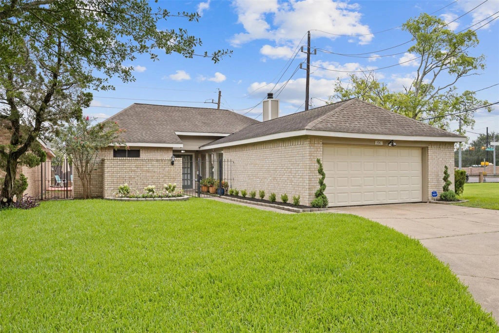 Set on a spacious 8,000 SF corner lot, this home offers rare flexibility and comfort in Bear Creek Village. The inviting living room features vaulted ceilings, abundant natural light, and a cozy brick fireplace. The original courtyard has been enclosed and converted into a versatile home office, media room, or additional bedroom. The primary suite is a private retreat with two walk-in closets, a full bath, and direct access to the backyard, where you’ll find a deck and plenty of space to relax or entertain. Secondary bedrooms provide comfort for family or guests. A long extended driveway gives direct access to the lot next door, creating even more room for kids, pets, or gatherings. Bear Creek Village offers pools, parks, and trails, with shopping, dining, and major highways just minutes away. With a large lot, flexible floor plan, and unique outdoor living options, this home is a standout opportunity in a prime location. Never flooded, per seller; ready for your personal touch.