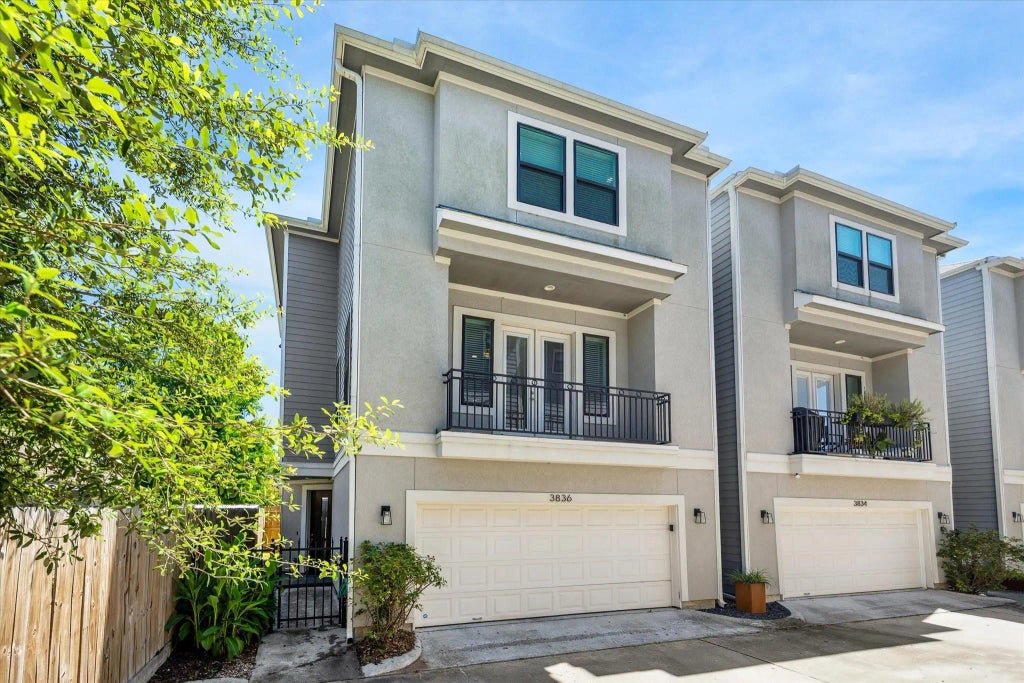 Corner lot, corner home! Gorgeous move in ready newer 2019 construction modern free standing patio home in the highly desired Garden Oaks/Oak Forest Area. This home features a spacious open concept second floor living and kitchen with an over-sized island ideal for entertaining! Custom cabinetry with glass door fronts, dry bar with wine/beverage refrigerator. Pretty tree and greenspace views, high ceilings, hardwood floors, open concept living spaces. Primary bedroom has a generous ensuite bathroom with large shower, spa tub, private WC, custom designed walk in closet. Modern fixtures and finishes throughout such as stainless steel appliances, quartz countertops, soft close drawers & cabinets, built in shelves, wet bar, mudroom. Sought after schools and near many new developments including Whole Foods 365, HEB, and more! Great walking neighborhood. One owner home and well maintained. A great place to call home.