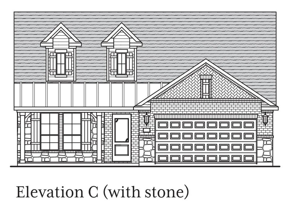 This beautiful one-story home features a vaulted ceiling with striking interior faux beams in the family room, creating a warm and inviting space. The master bedroom includes a charming bay window and a spa-like bath with an oversized shower. Luxury vinyl plank flooring runs throughout the main living areas, adding both style and durability. The kitchen is equipped with stainless steel appliances, a gas cooktop, a double-wall oven, and elegant finishes throughout. An upgraded 8' front door with textured glass and a full irrigation system completes this thoughtfully designed home