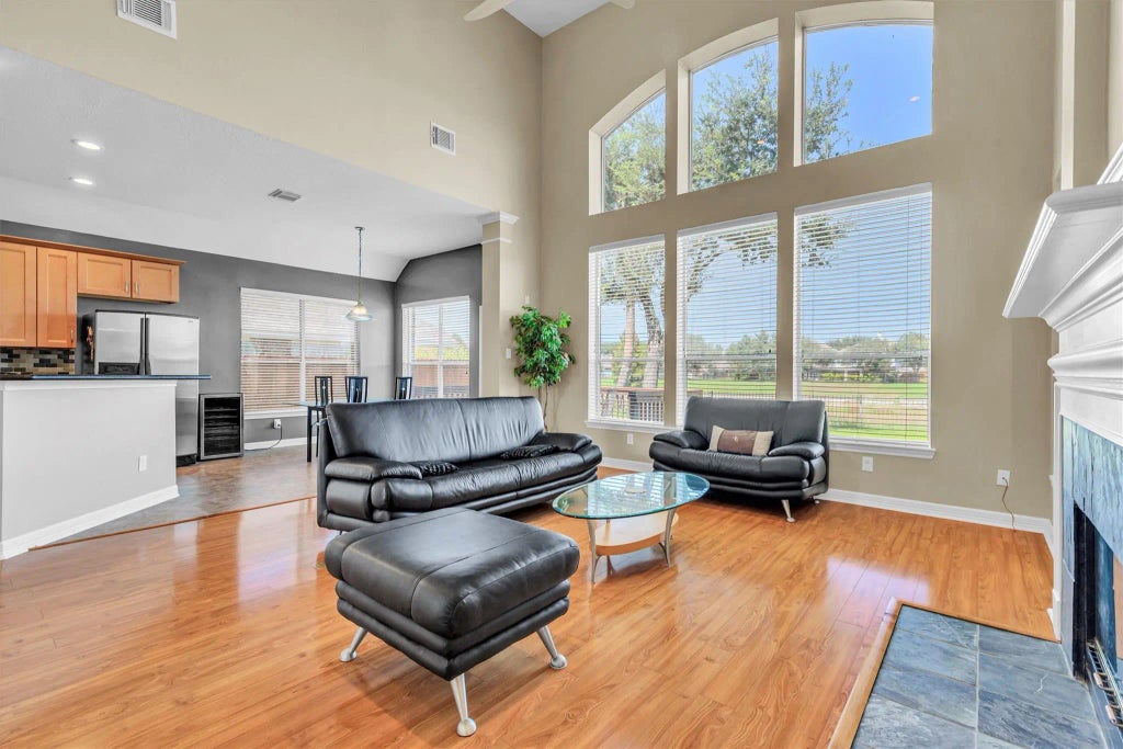 Beautiful two-story home in gated Shadowlake subdivision with a stunning lakeview backyard! This 4-bedroom, 2.5-bath residence offers 2,616 sq ft of living space on a spacious ~7,800 sq ft lot. Built in 1999, the home features a welcoming open layout filled with natural light, a cozy fireplace, and brick/concrete construction. The primary bedroom suite is conveniently located downstairs, complete with a walk-in closet and dual-sink bath. Upstairs offers three generously sized secondary bedrooms and an additional living area. The kitchen flows seamlessly into the dining and living spaces, perfect for entertaining. Step outside to enjoy peaceful mornings and evenings overlooking the lake. Central HVAC and attached two-car garage. Close to major highways, shopping, and dining.