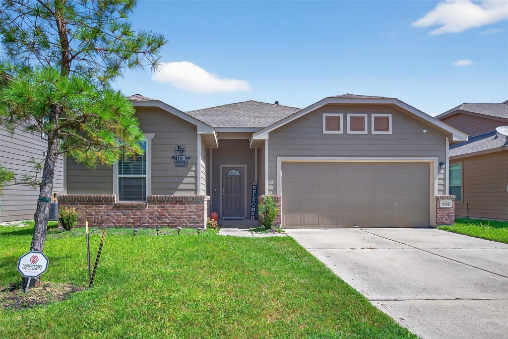 HABLAMOS ESPAÑOL — Built in 2021, this thoughtfully designed 3-bedroom, 2-bath home offers modern comfort and smart functionality. Enjoy an open-concept layout with a spacious family room, dining area, and kitchen featuring a walk-in pantry and large island—perfect for entertaining. The split-bedroom floor plan provides privacy, with a secluded owner’s suite that includes a dual-sink bath and walk-in closet. Two additional bedrooms share a full bath and separate hallway. The home also features a covered porch, laundry room, and a 2-car garage. Just 15 minutes from Downtown Houston with easy access to parks, schools, and highways. Move-in ready and perfect for any buyer!