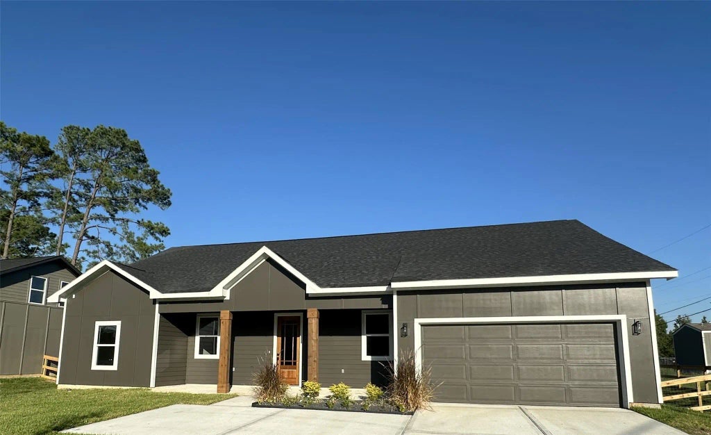 Welcome to this beautifully designed 5-bedroom, 3-bath modern farmhouse that perfectly blends rustic charm with contemporary elegance. Set in a peaceful, scenic location, this home offers space, comfort, and style in every detail. Step inside to find a spacious open-concept layout with abundant natural light, soaring ceilings, and gorgeous tile plank flooring throughout. The gourmet kitchen is a chef’s dream, featuring quartz countertops, custom cabinetry, a large center island, stainless steel appliances, and a walk-in pantry. The main-level primary suite offers a serene retreat with a spa-inspired en-suite bath, complete with a soaking tub, dual vanities, a walk-in glass shower, and a generous walk-in closet. Four additional bedrooms provide plenty of space for family, guests, or a home office setup, while the additional bathrooms are thoughtfully designed with stylish tilework and modern fixtures. Enjoy morning coffee on the inviting front porch or unwind on the covered back patio.