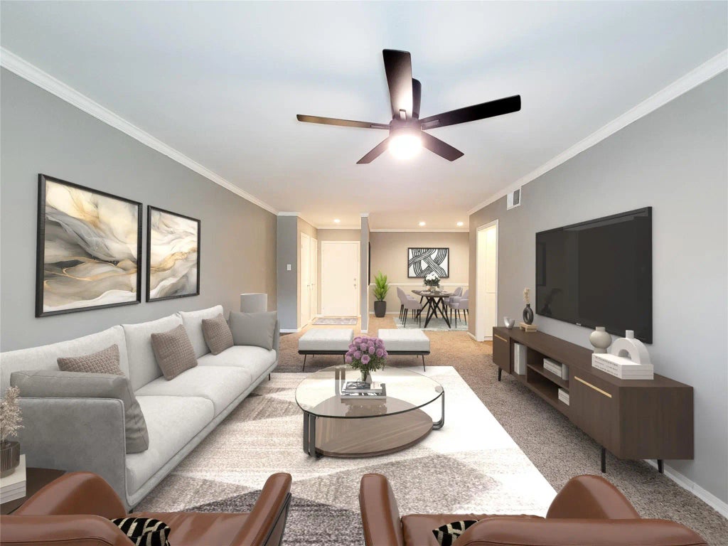 Large one bedroom condo with new carpet and paint, new remote controlled ceiling fans, ceiling canned lighting, and updated bath for an incredible price in this area! Balcony overlooking the beautifully landscaped courtyard is just steps away. All kitchen appliances, window coverings, and TV wall brackets remain. Priced so that you can do more personal updating to fit your style. This top (2nd) floor condo has easy access to the stairs, elevator, and the upstairs central laundry. All the utilities, a/c and water heating equipment, and much more included in the maintenance. There is one dedicated covered parking space in a secured area and one storage space. Three sparkling pools serve all of the residents. The location is convenient to Rice Village, Rice U and to the Med Center, plus is near major freeways. Make your appointment to see it today!