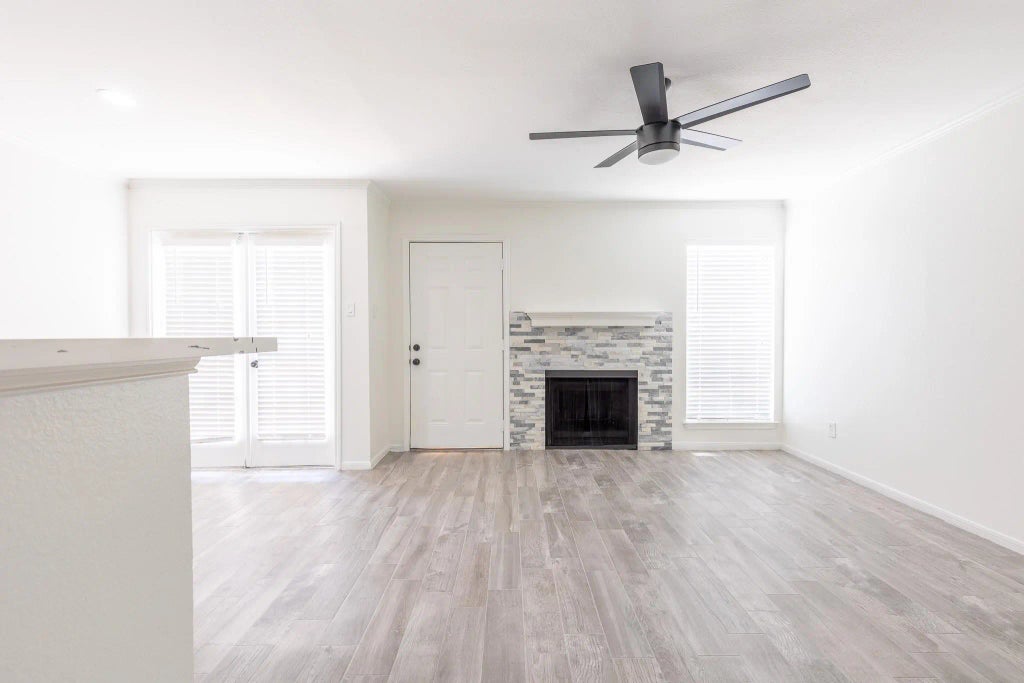 REMARKABLE TOWNHOME, 1-bedroom, TWO-STORY, 1 1/2 bathroom. Private patio. Includes WASHER & DRYER! Gorgeous ceramic flooring and QUARTZ countertops throughout. STUNNING kitchen with new WHITE cabinets, white tile backsplash, DEEP granite kitchen sink. Recessed LED lighting throughout. MAGNIFICENT one-of-a-kind custom tile shower; tile imported from Spain. Huge bedroom with high ceiling and LARGE walk-in closet. OFFICE AREA with sunny, natural lighting. Two (2) custom wood burning fireplaces. ASSIGNED PARKING SPACE! NO SMOKING, NO PETS. Quiet, gated community with state-of-the-art surveillance cameras, sparkling swimming pool, and security patrol. AWESOME LOCATION: Only 10-minutes away from NRG Stadium; close to the medical center. Easy access to Beltway 8, S. Main, 610, and 59. You will love this place.