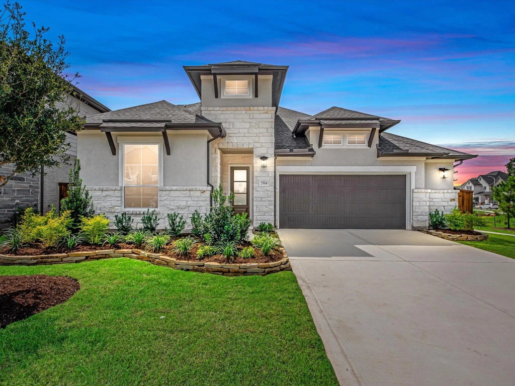 The Falcon plan has vaulted ceiling in family room backs up to park area. 2 car garage with a 5' extension. 8' doors throughout with a flex room
