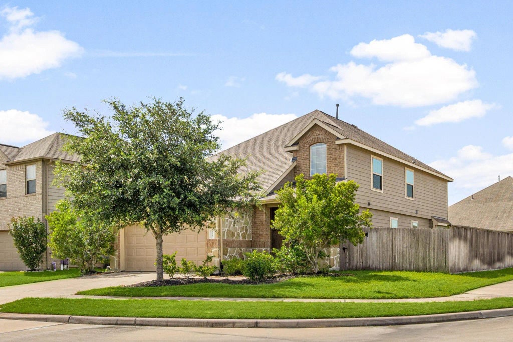 Welcome home to 17147 Devon Dogwood Trail. Charming corner-lot home with brick and stone elevation, mature shade tree, and manicured landscaping. The open-concept layout features a bright living room with wood-look floors, spacious dining area, and a large kitchen with granite counters, stainless steel appliances, and breakfast bar. The sunlit breakfast nook offers backyard views and easy flow between living spaces. The primary suite includes a luxurious bath with dual vanities, soaking tub, separate shower, and walk-in closet. Upstairs boasts a large flex room and three secondary bedrooms with a shared bath. Enjoy outdoor living with a fully fenced backyard, green lawn, and a gazebo perfect for entertaining. Attached two-car garage, neutral tones throughout, and move-in ready!