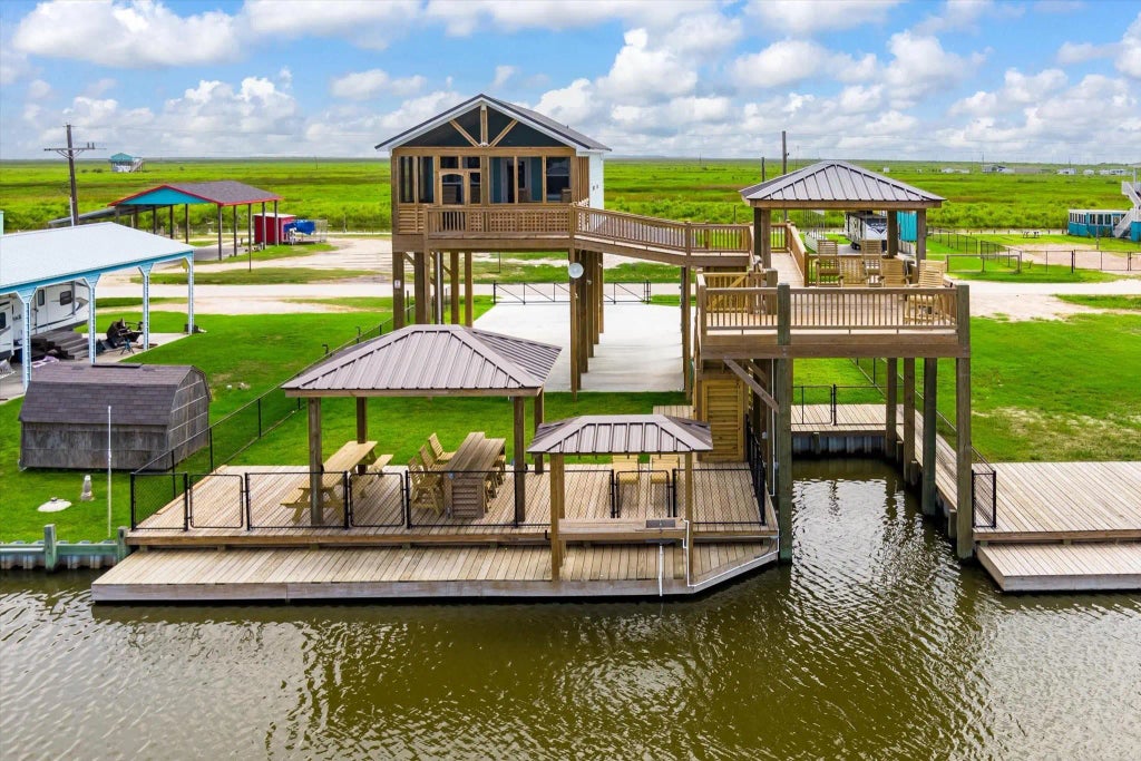 This one-of-a-kind waterfront/canalfront property is designed for comfort, convenience, and pure enjoyment of coastal living. It’s the perfect getaway for or friends who want to relax by the water. Features at a Glance: 1 bedroom, comfortably, 1.5 bathroom, Tall ceilings, open concept, Island kitchen with Nauti Elderwood soft-close cabinets and drawers, S/S appliances, Electric fireplace, Screened porch for year-round enjoyment, EXPANSIVE decking with swings, lots of seating, fish cleaning station, a Dual sling 6,000-lb boat lift, a Bulkhead, Wired for cargo lift installation, RV hookups (30/50 amp) for added flexibility, Fully fenced property with multiple gates, 1/2 bath downstairs, the list goes on and on!! You have to see to appreciate