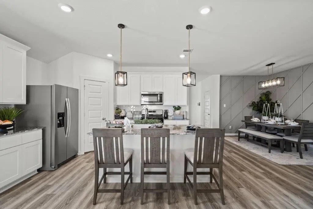 Welcome to the Lakeway Plan in Westland Ranch! This beautiful and functional home offers 4 bedrooms, 3 baths, and a 2-car garage. The foyer opens to a guest bedroom and bath, a study, and a coat closet. The kitchen features a breakfast bar, beautiful countertops, and stainless steel appliances. The open-concept floor plan flows into a spacious family room and a separate dining/breakfast area. Two additional bedrooms and a bath are located off the main living area. The private primary suite offers a luxurious bath with dual vanities, a water closet, and a walk-in closet. Relax on the covered patio overlooking a fully sodded yard with a full irrigation system. Smart Home Automation and Energy Efficient features included! Located in the highly desired CLEAR CREEK ISD. League City offers top-rated schools, parks, shopping, and dining, plus easy access to Clear Lake and the Gulf Coast for outdoor fun.