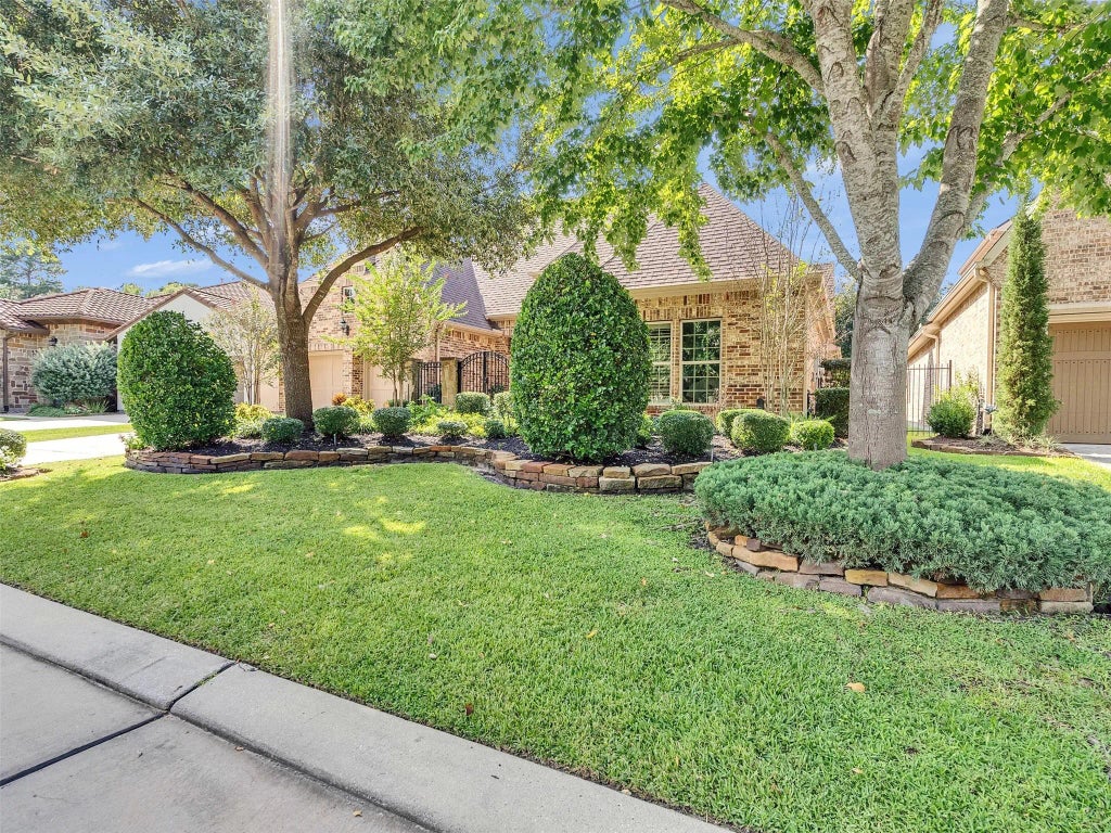 Luxurious & Cozy Darling Patio home in Creekside Village of The Woodlands! Privacy gate to entry, light & bright open floor plan w/versatility and amazing living spaces to enjoy. 3 beds, 2.5 baths, 3-car garage! Wood floors, custom trim work & walls of windows to enjoy views. Formal dining w/courtyard entrance, private executive study w/patio access, 2 bedrooms & full bath sit at the front of the home. The Chef's kitchen is complete w/large island, professional appliance package including built-in refrigerator, granite & quartzite counters & abundant storage! Large family room w/fireplace, wood beam ceiling & walls of windows opens to sun room or additional study space w/beautiful views to backyard. Spacious primary suite w/ spa-like bath & massive walk-in closet sits at the rear of the home for maximum privacy. Wrap around covered patio is the perfect way to relax at nights. Walking distance to dining, shopping, and entertainment!