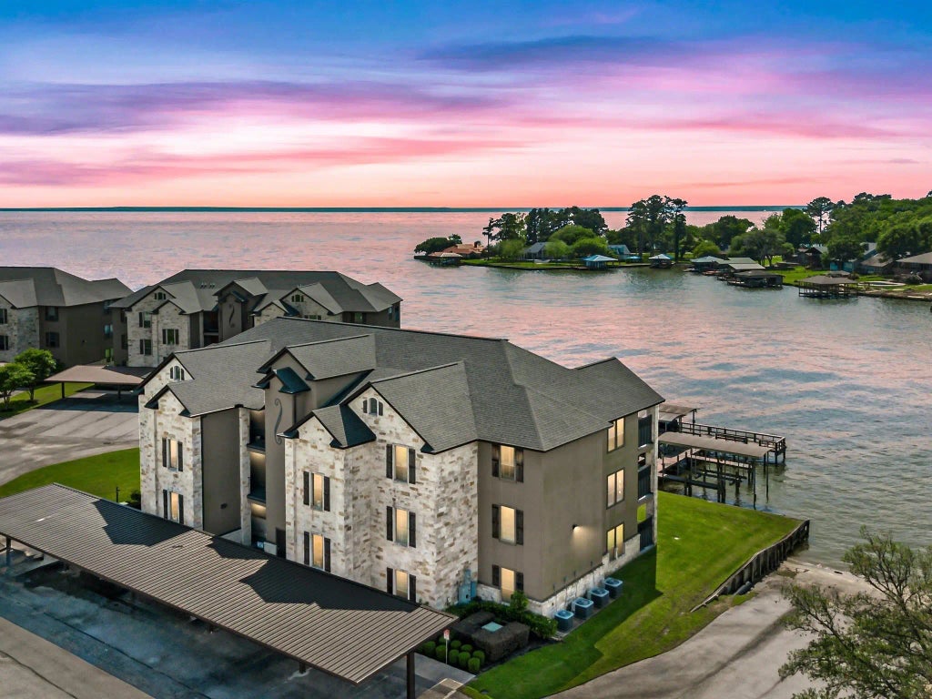 Welcome to Unit C4 at 2112 FM 3186 in Bella Vista Condos on Lake Livingston! This fully furnished 3-bed, 2-bath waterfront condo features high ceilings, luxury vinyl flooring, private balcony with sunset views & an elevator. Enjoy your covered boat slip (#C4) with 2024 electric lift, beach access, pool, picnic areas & gated entrance. The kitchen opens to a spacious living area & includes granite counters & under-cabinet lighting. Assigned covered parking, boat/trailer/RV parking & trash removal included. Move-in ready with all furniture, dishes, and linens. Completely turn key, price for furnishings available on request — perfect for full-time living, a weekend getaway or Airbnb investment. Don’t miss this chance to own in Bella Vista, the premier condo community on Lake Livingston. 2112 FM 3186 Unit C4, Onalaska, TX 77360