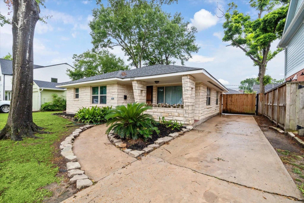 Zoned to Oak Forest Elementary!! Discover this charming Oak Forest gem with a brand-new garage added in 2025 and sparkling pool. This rare find offers an open and inviting layout, with the living room flowing seamlessly into the dining area and beautifully updated kitchen. The kitchen is a standout with granite countertops, glass-front cabinets, stainless steel appliances, and easy access to a versatile home office. French door from the office opens to the backyard oasis, making working from home feel like a retreat. The primary suite features an ensuite bath with a shower, while two additional bedrooms and a second full bath provide ample space for family or guests. Outdoors, enjoy year-round relaxation in the pool and hot tub with a grassy area perfect for pets, play, or gardening. Recent updates include new windows and the newly constructed garage providing covered parking for two vehicles.