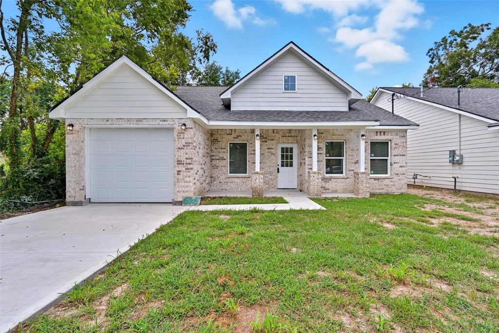 Welcome to this beautifully designed 3 bedroom, 2 bathroom modern home! Thoughtfully finished in a timeless, neutral palette. The open-concept layout features a spacious living room with vaulted ceilings and a striking wood beam, seamlessly flowing into the dining area and kitchen- perfect for both everyday living and entertaining. The kitchen is a chef's delight with a large center island and a walk-in pantry for ample storage. The primary suite, complete with a private en-suite bathroom featuring dual sinks, a walk-in shower, and a generous walk-in closet. Two additional bedrooms and a full guest bath offer space and comfort for guests or a home office. Step outside to enjoy the backyard- ideal for pets, play, or outdoor gatherings. NO HOA!! Conveniently located close to a neighborhood park, medical, major roadways, and just a short drive to Galveston! Don't miss your chance to own a brand-new, stylish home with modern comfort and thoughtful design! Completion Date: July 18th