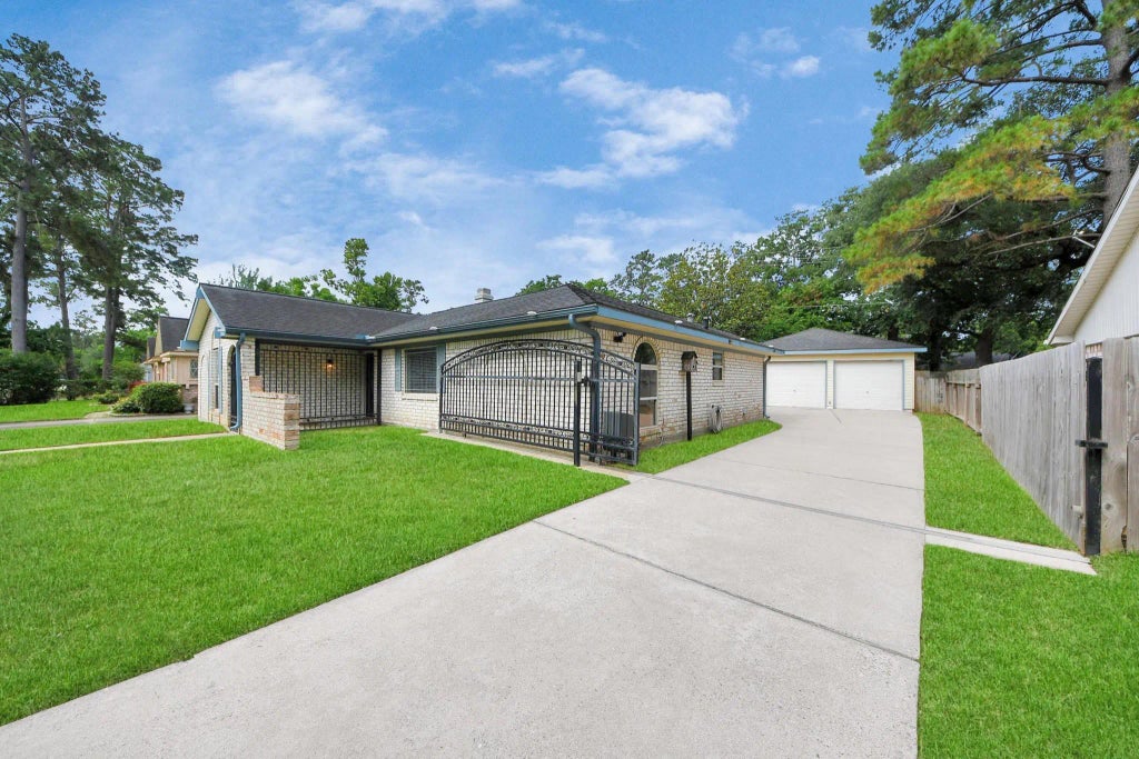 Beautiful and move-in ready, this 3-bed, 2-bath home offers comfort, convenience, and style! Enjoy added security with your own remote-controlled private gate. Inside, the spacious living room features high ceilings and a cozy wood-burning fireplace—perfect for relaxing or entertaining. Fresh paint throughout, brand-new carpet in all bedrooms, and wood-look porcelain tile in main areas. The kitchen is a chef’s delight with granite countertops, a travertine backsplash, and stainless steel appliances. In-house utility room adds convenience. The primary suite includes a walk-in closet, built-in bookshelf, and ensuite bath. Two additional bedrooms offer comfort or flexible space. Large, fully fenced backyard is ideal for gatherings or enjoying the fresh air. Back patio perfect for morning coffee or evening relaxation. Lawn care & trash service included. Optional washer and dryer for $35/month. Timberlane offers a pool, parks, playgrounds, walking trails, and more! Schedule your tour today!