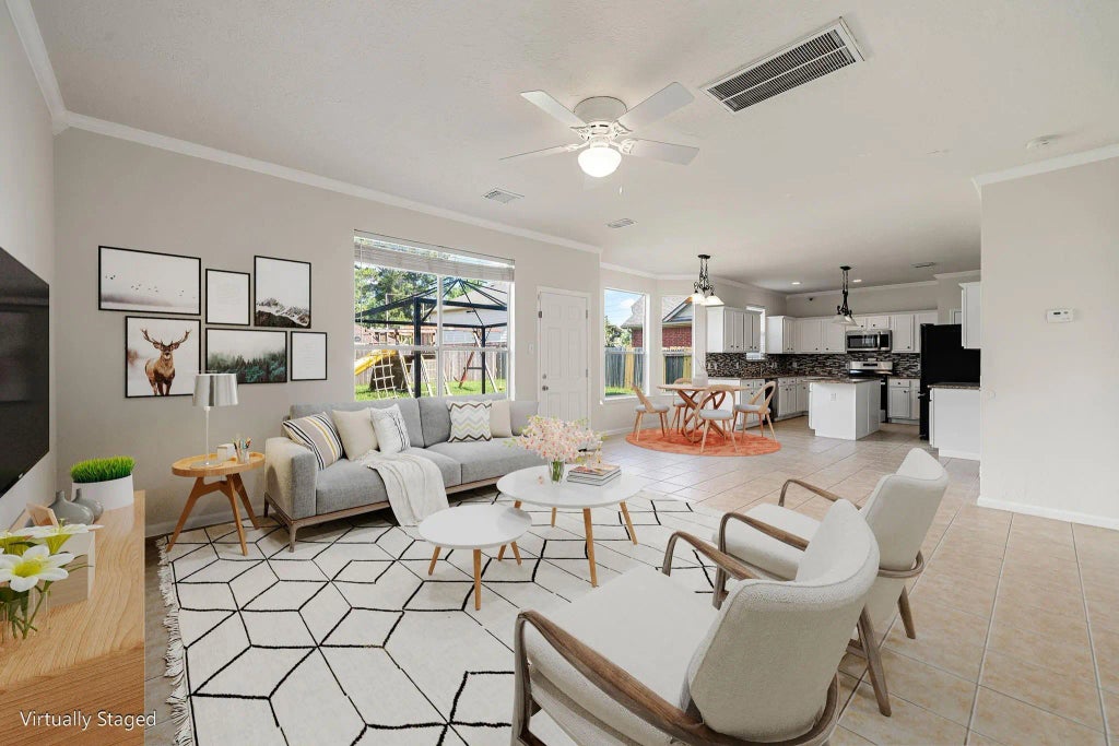 Welcome to this spacious and well-maintained 4/5-bedroom, 2.5 bath home nestled in a quiet and highly sought-after neighborhood shows pride of ownership. Grand 2-story entry leads to an open-concept first floor featuring a bright and airy family room, a breakfast area, and an updated large kitchen with an island, ample cabinetry, generous storage and counter space, and a pantry with custom sliding shelves. A flex space on the main level offers versatility and can be used as a formal living or dining room. Another enclosed room can be used as an office, a 5th bedroom, and more! Upstairs, you’ll find the laundry room and four generous sized bedrooms, including a spacious primary suite complete with an ensuite bath. Enjoy the outdoors in your fully fenced, huge backyard with a playset - new fence 2024. AC replaced in 2023,2024. Conveniently located near top-rated schools, shopping, dining, and everyday essentials, this home truly has it all.