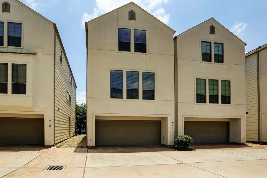 Sleek modern lines define this terrific beautiful patio home located w/in walking distance of some of Houston's hottest restaurants. Light and bright, this home offers gleaming hardwoods, high ceilings, stainless appliances. First floor flex room can be den/study or bedroom and has direct access to fenced private patio. Open living/dining/kitchen with glass doors to south facing balcony overlooking patio. All appliances included.
