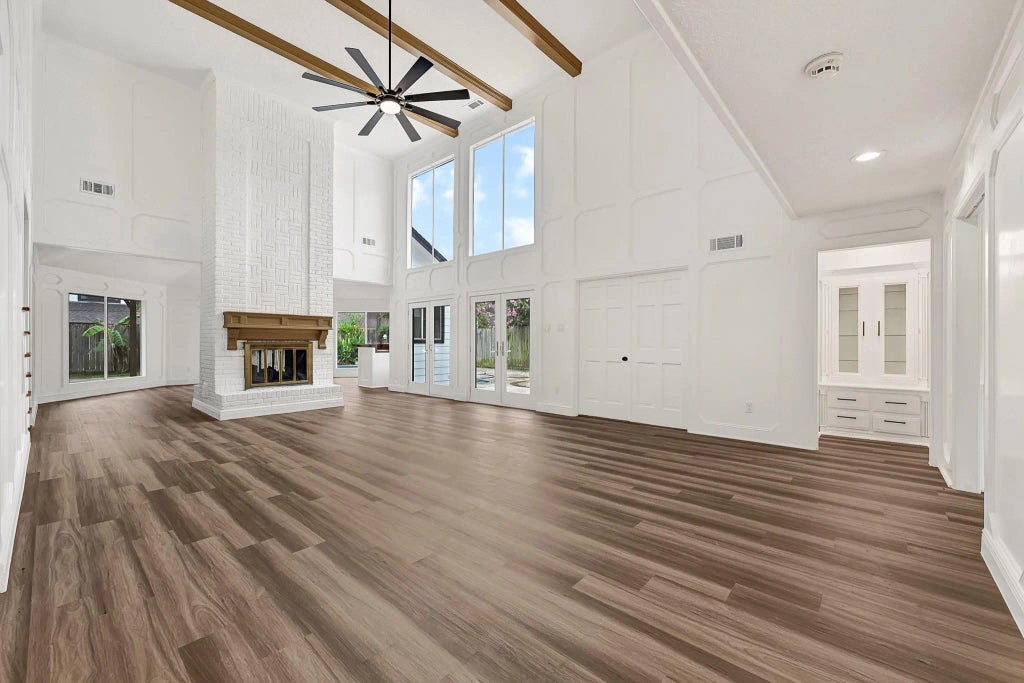 Price to sell. Welcome to 15618 Banty Falls Court, a reimagined estate offering over 4,400 sq ft of refined living space with soaring ceilings, dramatic modern finishes, and thoughtful updates throughout; the bright white brick exterior opens to a showstopping interior featuring wide-plank flooring, expansive windows, a two-story fireplace, exposed beam ceilings, and a luxurious flow perfect for both quiet living and entertaining; cook in style in the sleek, quartz-topped kitchen with gold-accented hardware and marble-look backsplash, then unwind in the spacious primary retreat with pool views and a spa-like bath; upstairs offers generous bedrooms, fresh tilework, and game room loft access; the private backyard includes a sparkling pool, pergola, and patio ready for summer enjoyment; nestled on a cul-de-sac in Olde Oaks with access to schools, shopping, and commute routes.