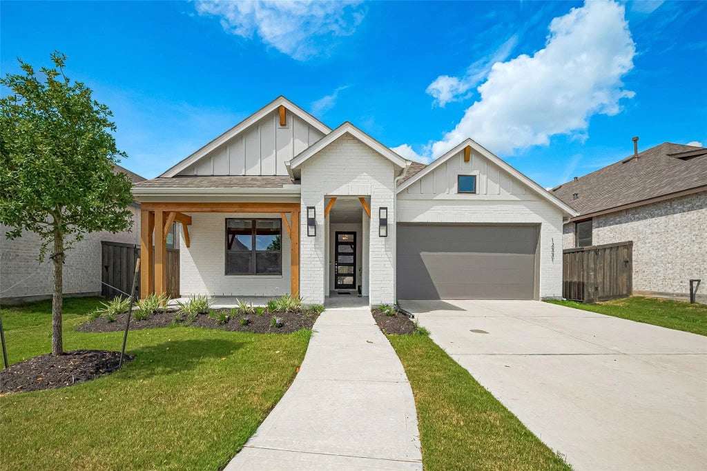 This open-concept, 4 bedroom 3 bathroom Highland home features vaulted ceilings in the family room and a separate study. The white cabinetry paired with a soft gray island, white quartz countertops, built-in stainless steel appliances, and a large single-basin sink make the kitchen as functional as it is stunning. Enjoy Revwood flooring throughout the main living spaces, adding a modern and elegant touch. The spacious primary suite offers a serene escape with a spa-like bathroom featuring a freestanding tub, a beautifully tiled shower, and generous closet space. Thoughtful upgrades can be found throughout—upgraded tile on the front porch, 8-foot interior doors, tankless water heater, covered outdoor living space, full sod and sprinkler system, and more. Conveniently located near top-rated schools, shopping, dining, and the golf club, this home truly has it all—style, space, and unbeatable location. Schedule your tour today!