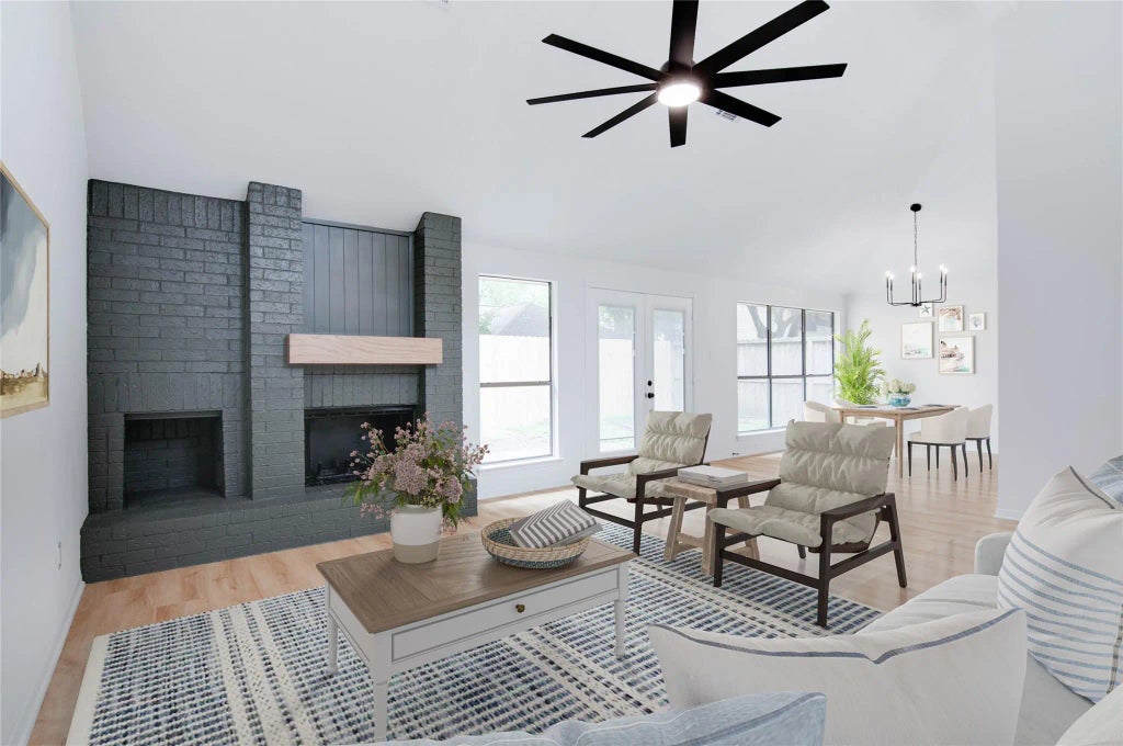 Fully upgraded & move-in ready! This beautifully remodeled 2-story home offers 1,902 sqft of modern living with 4 bedrooms, 2.5 bathrooms, and the primary suite conveniently located on the first floor. Step inside to soaring ceilings, fresh paint, and a cozy fireplace that anchors the spacious living area. The kitchen has been completely updated with sleek countertops, stylish cabinetry, and stainless-steel appliances—perfect for entertaining. Upstairs, you’ll find three additional bedrooms and a full bath, ideal for family or guests. The bathrooms feature modern finishes and a stunning walk-in shower. With new flooring throughout, updated fixtures, and an open, light-filled layout, this home blends comfort with style. Enjoy a private backyard with no back neighbors, perfect for relaxing or gatherings. Conveniently located in Houston 77065 near schools, shopping, and major highways.