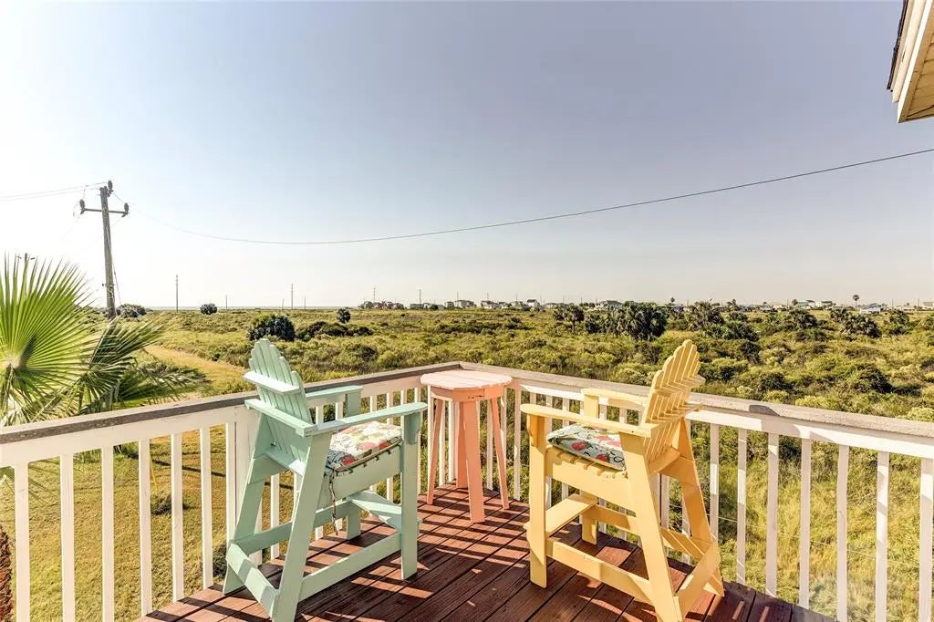 Newly renovated and just a short golf cart ride to the beach, this thoughtfully updated 2-bedroom with an additional a bunk room, 2-bath Terramar Beach home sits on a one-of-a-kind lot with breathtaking views of both the Gulf and the Bay. Imagine unwinding on the expansive, tranquil deck, watching stunning sunsets and observing birds over the nearby nature preserve. The open floor plan is bright and welcoming, with a spacious living room featuring vaulted ceilings and rustic wood beams. The modern eat-in kitchen boasts built-in appliances, a breakfast bar, ample storage, and a sunlit dining area, perfect for gathering. Two bedrooms feature ensuite baths, along with a cozy bunk room. Meticulously maintained, fully furnished and beautifully designed, this property offers the best of Galveston coastal living!
