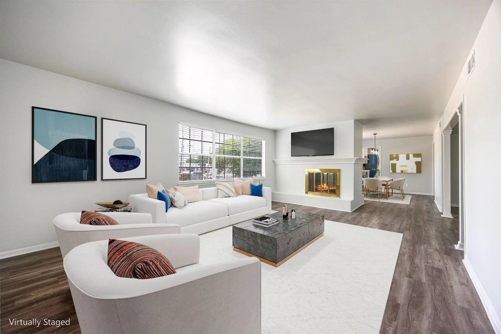 Discover an exceptional opportunity to own a spacious 2nd-floor condo ideally located just minutes from the Galleria, River Oaks District, and Highland Village. This bright and inviting home welcomes you with an anteroom-style entry and a beautifully lit open layout anchored by a striking double-sided travertine fireplace. The large kitchen offers generous prep and storage space, while the loft—featuring its own balcony—is perfect as a home office, guest retreat, or reading nook. The primary suite includes a cedar-lined walk-in closet, and a flexible secondary living area provides additional comfort and function. Recent updates include fresh paint, new carpet, quality fixtures, and travertine countertops. Washer, dryer, and refrigerator convey. Enjoy two reserved parking spots—one oversized—with direct access to your back door. This gated community offers low taxes, and the HOA covers electricity, water, and insurance. Move-in ready and centrally located, this gem won’t last long!