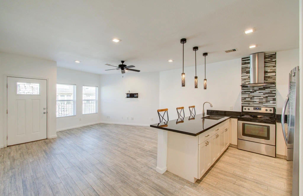 Charming townhouse in the Woodstock community of Tomball, offering 980 sq. ft. of modern living. Built in 2016 with contemporary finishes, this home features LVP flooring throughout—no carpet—creating a sleek and comfortable atmosphere. The open-concept layout includes a bright living area, overlooking the community pool, a stylish kitchen with stainless steel appliances, and a breakfast bar. The primary bedroom offers private access to a serene back patio. Equipped with washer and dryer. This move-in-ready home combines convenience and style. In a prime location, near hospitals, restaurants, and major highways, including 249 and 99.