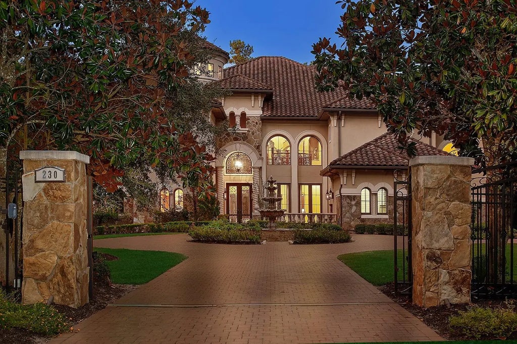Exuding elegance and grandeur, this breathtaking Mediterranean estate is nestled on over an acre in the prestigious 24/7 guard-gated Carlton Woods community. A stately circular drive with stone fountains welcomes you to refined interiors—Formals, a sunken wine grotto, and a spacious family room with panoramic views of the resort-style pool, spa, and 3 covered patios. The lavish outdoor retreat features a summer kitchen, fireplace, wet bar, basketball court, and generator. The main level includes a private office and an opulent primary suite with fireplace, sitting area, coffee bar, dual closets, and a private sauna. The chef’s kitchen boasts granite counters and a formal breakfast area. Upstairs: theater, game & card rooms, wet bar, gym, library, sitting areas, and a 2nd furnished office. A rare blend of luxury, comfort, and lifestyle!