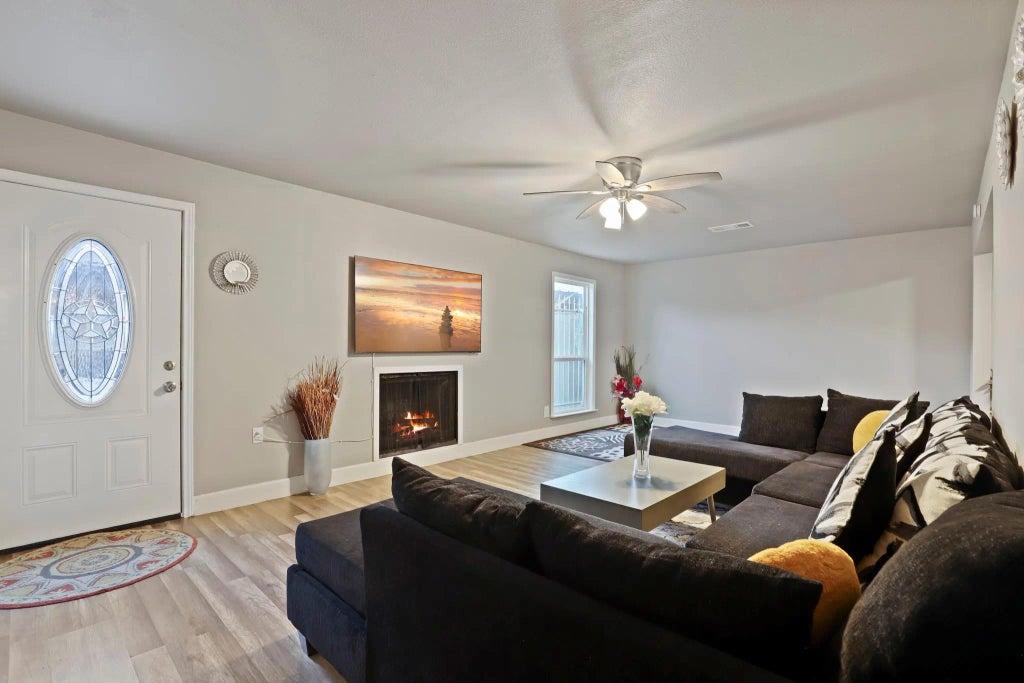 Brimming w/ style & updates, this spacious 2-story townhouse offers a 2-car garage for true low-maintenance living! Inside, a bright open family room w/ cozy fireplace flows seamlessly into the remodeled kitchen boasting shaker cabinets, quartz counters, tile backsplash & SS appliances—ideal for cooking & entertaining. NEW laminate floors & fresh paint keep the home light & inviting, while a versatile second living area adds flex space for a game room or office. Major 2024 upgrades include NEW AC (Trane XR 4-ton), modern entry door, new insulation, washer & dryer, refrigerator, & more—delivering peace of mind. Upstairs, the oversized owner’s suite impresses w/ tall ceilings, dual vanities & private bath, joined by 2 secondary bedrooms & another full bath. Relax outdoors on the private patio or enjoy community amenities including pool, park & green space. Quiet neighborhood w/ creek views, easy access to shopping, dining, major highways & downtown Houston.