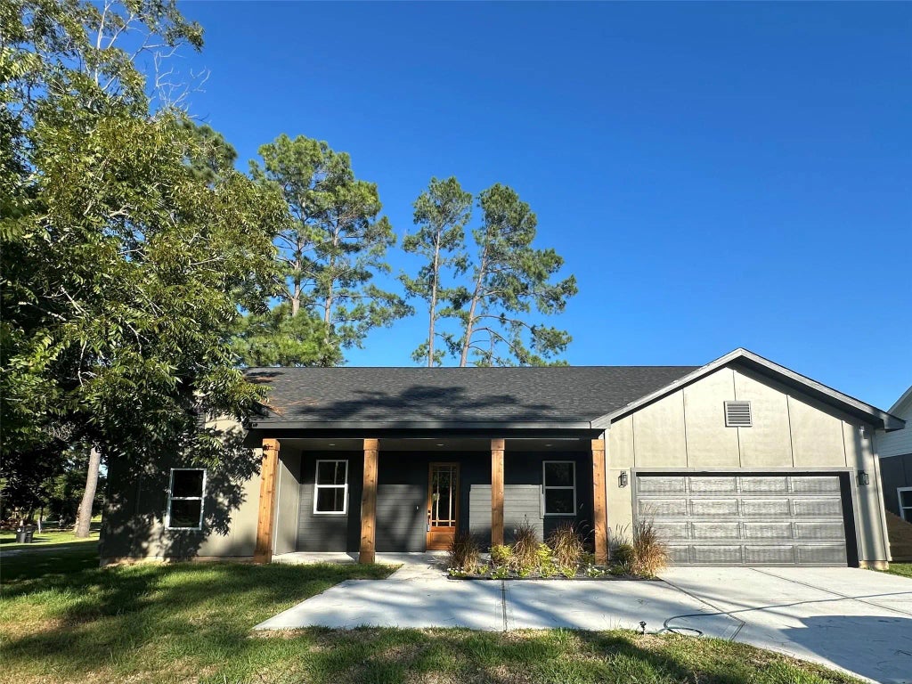Welcome to this beautifully designed 5-bedroom, 3-bath modern farmhouse that perfectly blends rustic charm with contemporary elegance. Set in a peaceful, scenic location, this home offers space, comfort, and style in every detail. Step inside to find a spacious open-concept layout with abundant natural light, soaring ceilings, and gorgeous tile plank flooring throughout. The gourmet kitchen is a chef’s dream, featuring quartz countertops, custom cabinetry, a large center island, stainless steel appliances, and a walk-in pantry. The main-level primary suite offers a serene retreat with a spa-inspired en-suite bath, complete with a soaking tub, dual vanities, a walk-in glass shower, and a generous walk-in closet. Four additional bedrooms provide plenty of space for family, guests, or a home office setup, while the additional bathrooms are thoughtfully designed with stylish tilework and modern fixtures. Enjoy morning coffee on the inviting front porch or unwind on the covered back patio.