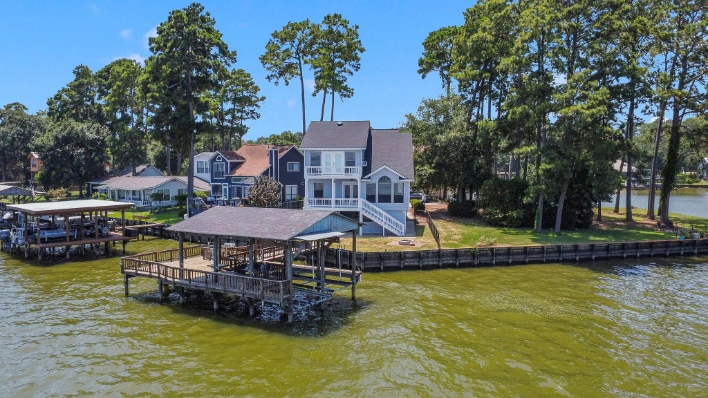 One of a kind 3 story,3 bed, 2bath, WATERFRONT home on open water with a spectacular 180 degree view of Lake Livingston in the highly sought after Twin Harbors Subdivision. The open concept 1st floor provides ample living/dining space while your 2nd and 3rd story offers spacious bedroom and bathing areas. Stainless steel appliances adorn the kitchen. A heated/cooled converted garage can serve as storage or a game room. An outdoor bathroom keeps the traffic out of the house while swimming or outdoor activities. The two outdoor balconies will entertain you with their overlook of your massive boathouse complete with a boatlift and two jet ski lifts. The boathouse also provides a fish cleaning area and plenty of room to fish in your own backyard. Enjoy the outdoor firepit on a cool East Texas night. The interior was painted and a composition roof was installed in July 2023. Don't miss out on this awesome home, call today for a private showing!