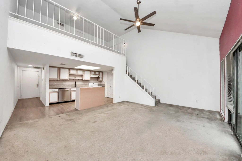 Welcome to this charming and well-maintained 1-bedroom, 1-bath condominium featuring a spacious loft-style layout across two stories. Enjoy a light-filled living area with vaulted ceilings and direct access to your own private balcony—perfect for morning coffee or evening relaxation. The open loft upstairs offers flexible space for a home office, guest area, or cozy lounge. The unit includes a washer and dryer, providing in-home laundry convenience, as well as a detached carport for covered parking. Located in a desirable community with access to top-notch amenities, including a sparkling pool and tennis court. Conveniently situated near shopping, dining, and major roadways for easy commuting.