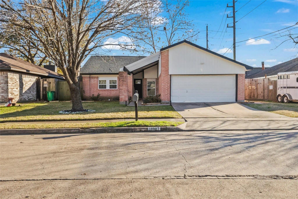 Step into this charming single story home in White Oak Bend. Featuring 3 bedrooms and 2 full bathrooms with a spacious split floorplan. The kitchen possesses lovely granite countertops, breakfast bar and recently renovated cabinetry. Lofty vaulted ceilings in living room accompanied by a beautiful wood burning fireplace. Tile flooring throughout the home. Fully fenced backyard with plenty of space, new concrete decking and a recently built fire-pit area. Enjoy being minutes away from Jersey Meadow Golf Course, HEB and plenty of other great eateries Houston has to offer! Conveniently located between US-290 and Sam Houston Tollway allows for an easy commute. Schedule your showing today!