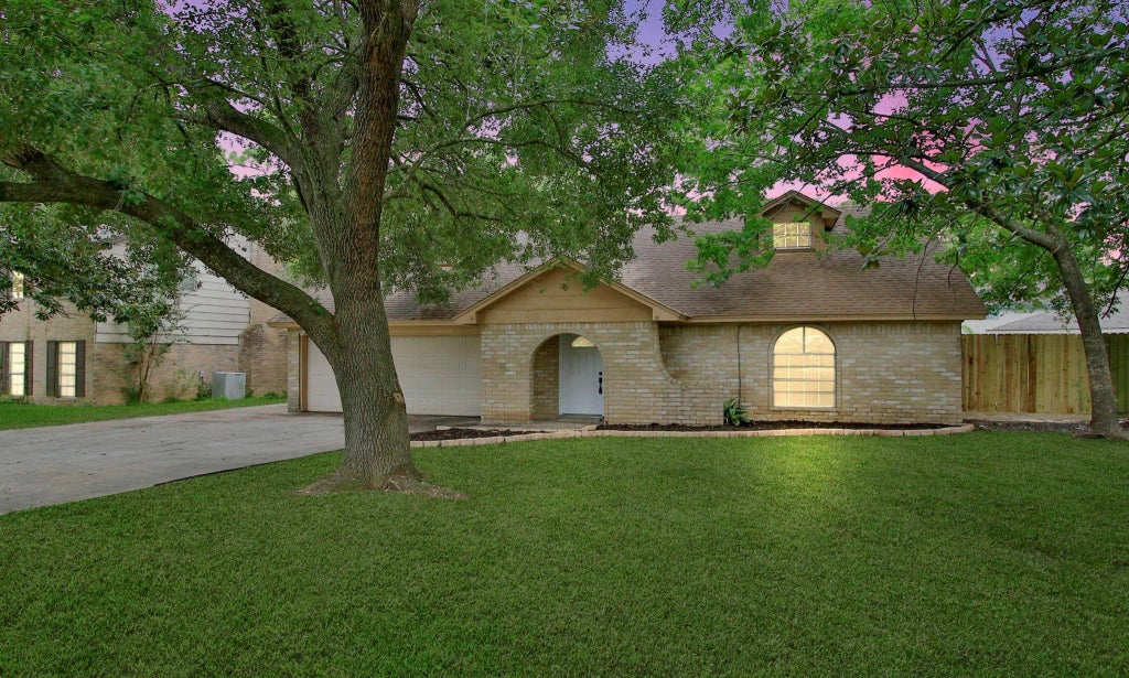 Never flooded! No flood zone! No HOA! Recently renovated and full of character, this two-story home is built for living and entertaining! Downstairs features a unique brick-floored office with French doors, a chic powder bath, laundry room, and a bold kitchen with open shelving, an accent wall, and a spacious butler’s pantry. The open dining and living area stuns with a floor-to-ceiling brick fireplace. The primary suite is a true retreat with a luxurious freestanding tub living inside a massive walk-in shower. Upstairs offers three spacious bedrooms and two full bathrooms. Step outside through grand French doors to your private backyard oasis—complete with a sparkling pool, diving board, waterfall, garden, storage shed, and a private outdoor pool bathroom. With stylish updates and a layout perfect for hosting or relaxing, this home blends charm, comfort, and fun in all the right ways!