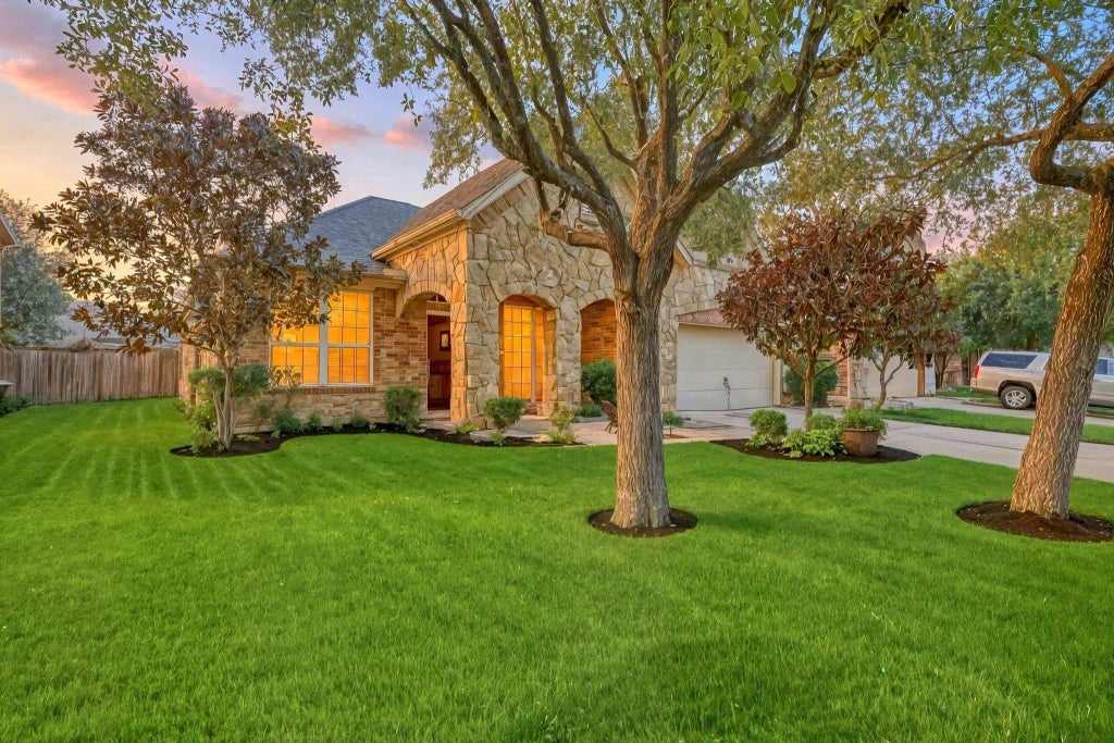 Welcome to this beautifully maintained home offering a spacious open-concept layout designed for comfort and entertaining. The inviting family room features a stone-accented fireplace and large windows filling the space with natural light. A well-appointed kitchen boasts an oversized island, granite-style countertops, abundant cabinetry, and stainless steel appliances, flowing seamlessly into the breakfast area and formal dining room. The private primary suite includes a tray ceiling and spa-like ensuite with dual vanities, soaking tub, and separate shower. Secondary bedrooms and a full bath provide ample space for family or guests. Outdoors, enjoy a covered patio and fully fenced backyard with plenty of room to play. The community offers resort-style amenities including a pool, splash pad, playground, and clubhouse. Conveniently located near shopping, dining, and entertainment with easy access to commuter routes. Schedule your showing today and make this home yours!